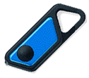 unit has an open triangle shaped corner that latches shut. This makes the unit easy to hook onto a key chain.